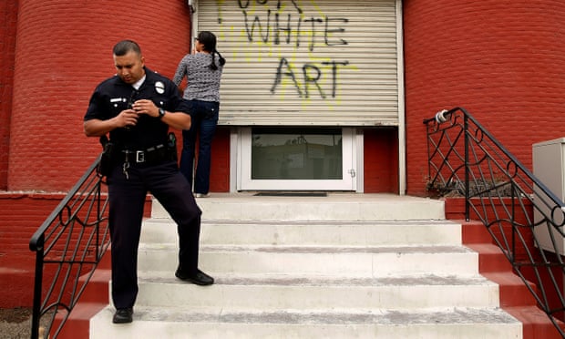 Police in Los Angeles are investigating the vandalism of art galleries in a Latino neighbourhood, including the spray-painted message âfuck white artâ, as possible hate crimes.